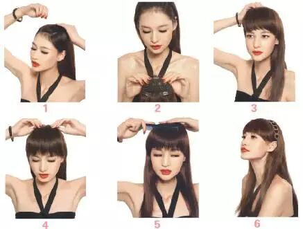 1. 将自己前额的头发向后拢起,并用发卡固定;
